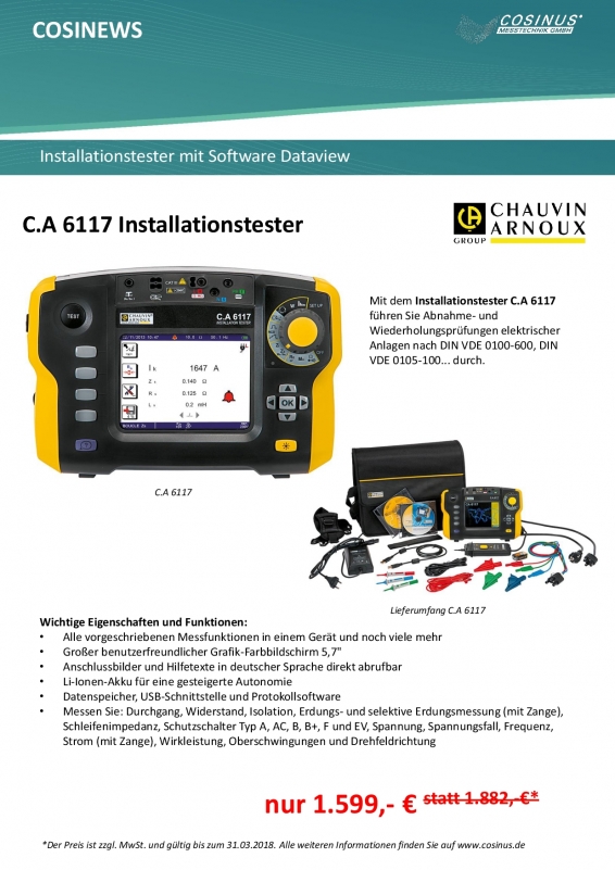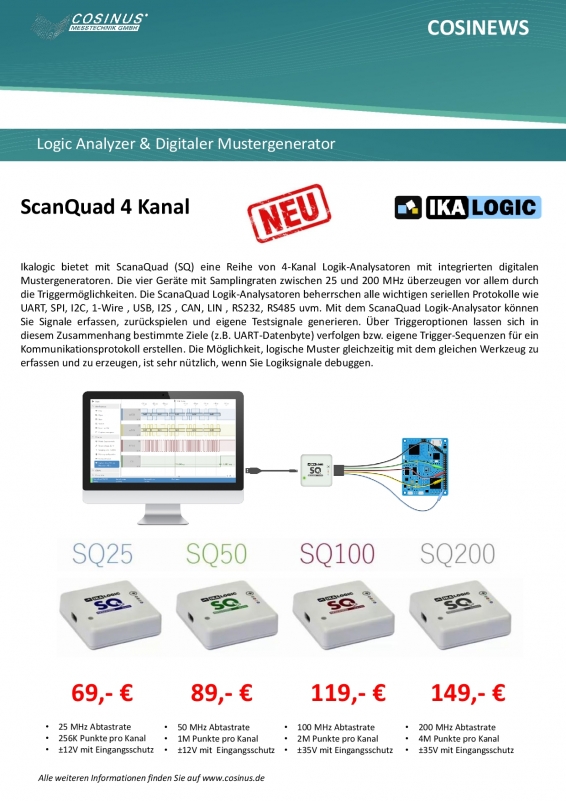 Cosinews - NEU: Ikalogic Wifi Ozilloskop & Logicanalyser, ChauvinArnoux CA6117 Angebot 03/18