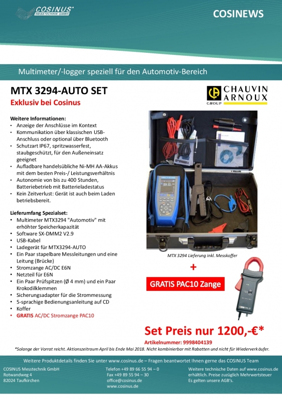 Cosinews Multimeter/-logger speziell für den Automotiv-Bereich