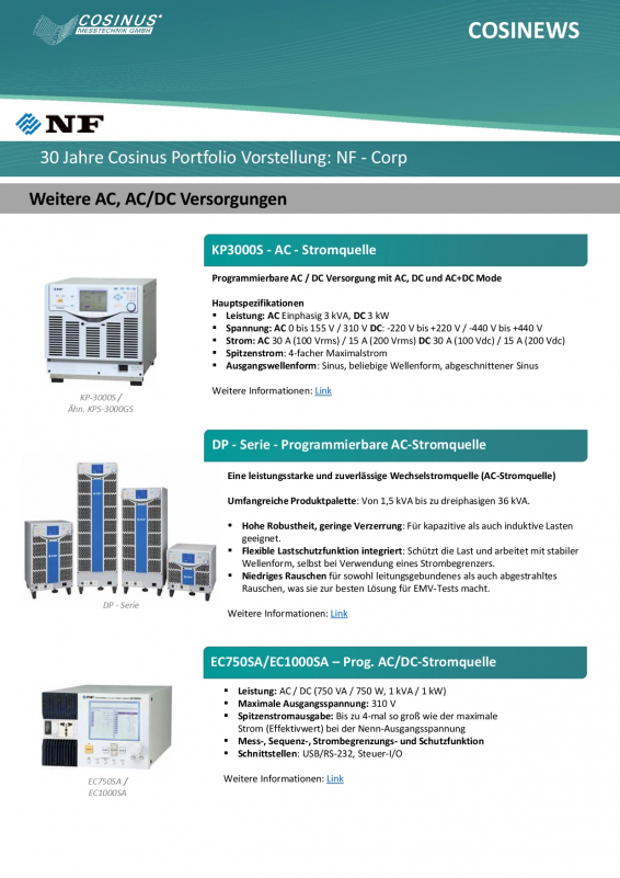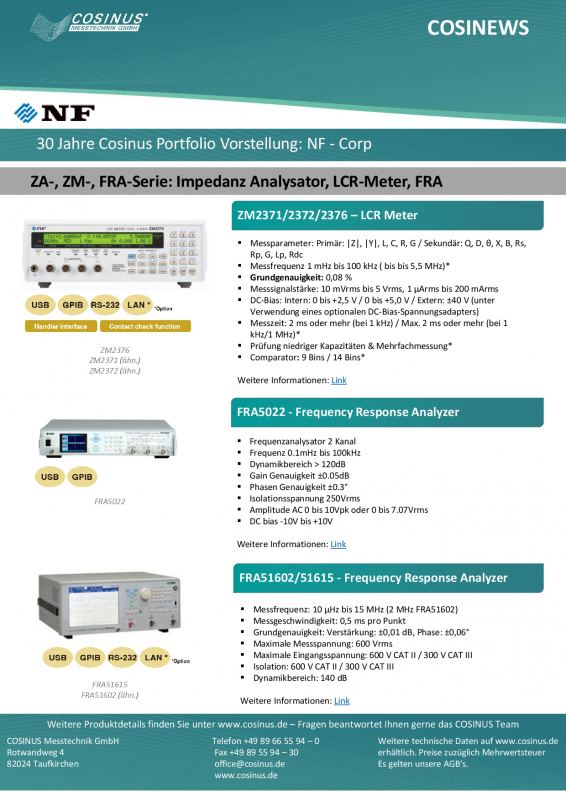 Cosinews - 30 Jahre Cosinus Portfolio Vorstellung: Produkte von NF Corp. Teil 2 09/24