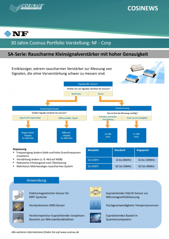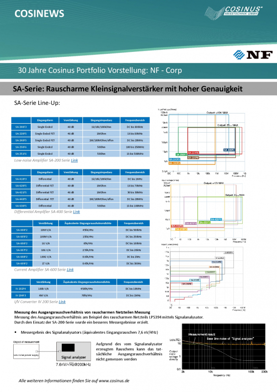 - SA-Serie: Rauscharme Kleinsignalverstärker mit hoher Genauigkeit