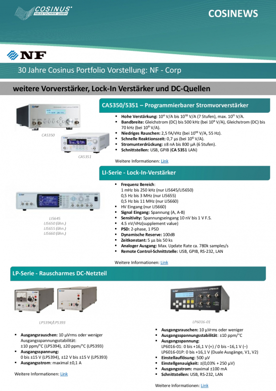 Cosinews - 30 Jahre Cosinus Portfolio Vorstellung: Produkte von NF Corp. Teil 1 09/24