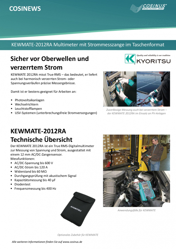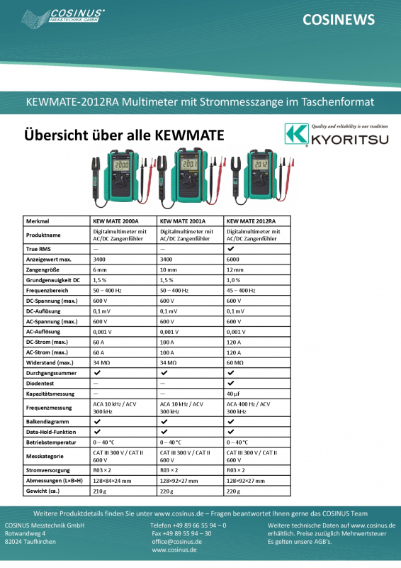 Cosinews - KEWMATE-2012RA Multimeter mit Strommesszange im Taschenformat 06/25